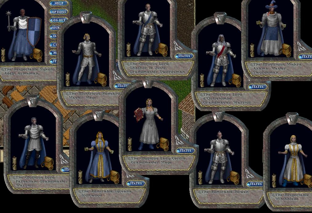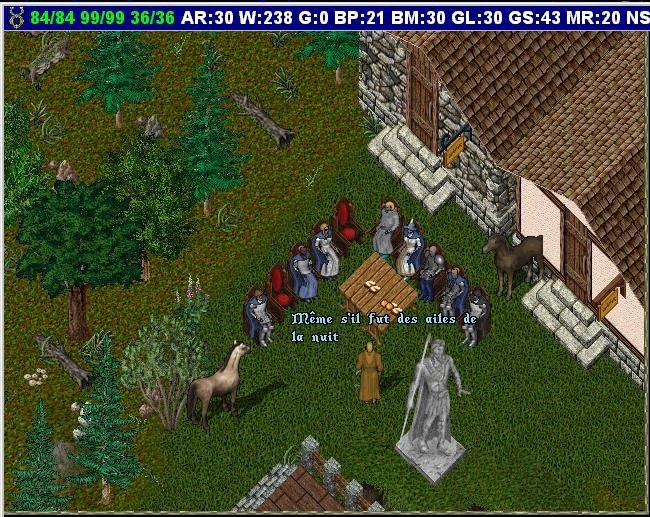Presentation des acteurs : Pardonnez moi, car certains manquent mais il a deja fallu que je retrouve ces vieilles copies d'ecran. Il manque par exemple Hugues de Conros (Ergorn), Toral Mc Rayan (Toral) et pour ceux qui aurait oublié OutreTombe c'est Orsoleil (SangDragons) ou Aneker (Everquest)